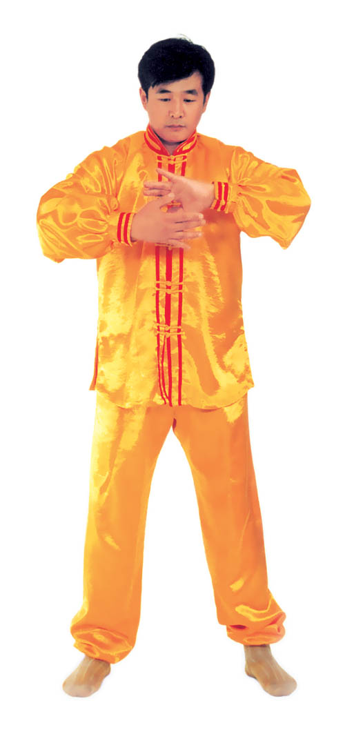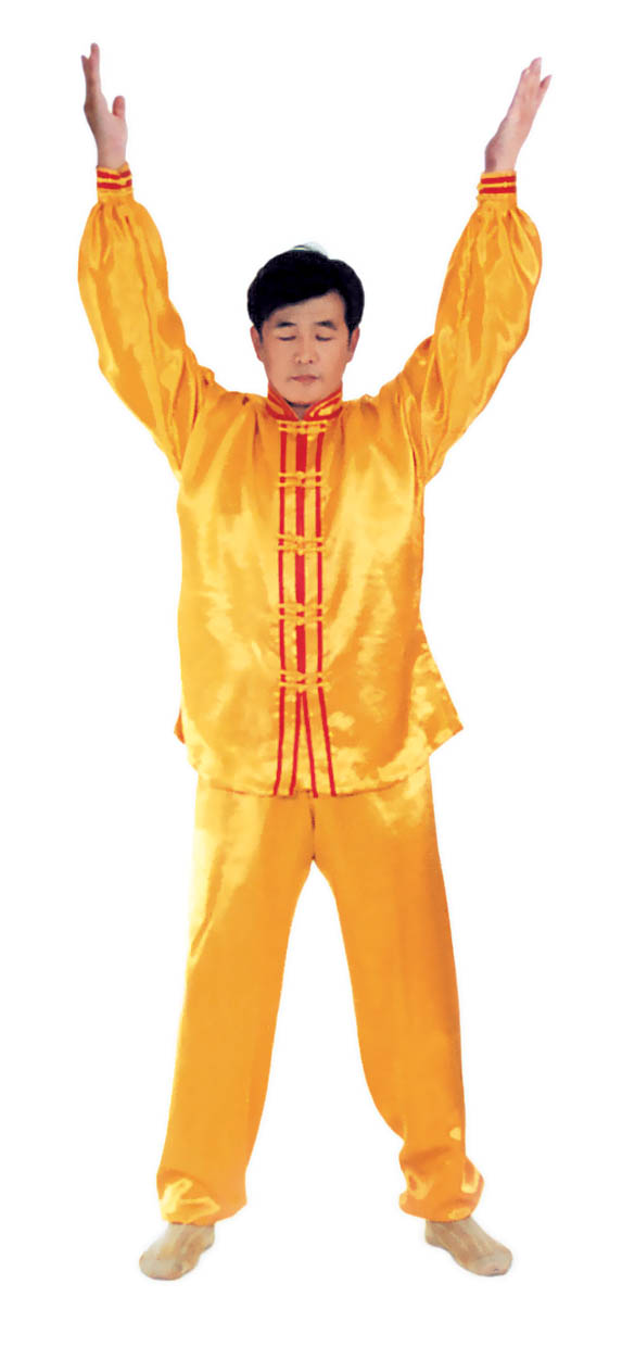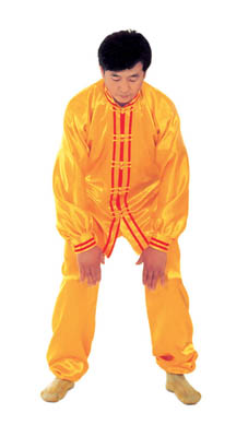 Thế dự bị: Toàn thân thả lỏng, lỏng nhưng không oải, hai chân đứng rộng bằng vai, đứng thẳng tự nhiên, hai chân hơi chùng một chút, đầu gối và háng trạng thái lỏng tự nhiên; hàm dưới hơi thu, lưỡi đặt hàm trên, hàm răng hơi hở một tí, môi miệng ngậm lại, hai mắt hơi nhắm, nét mặt mang ý an hoà.