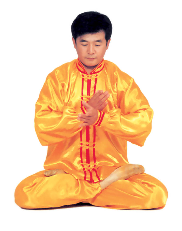 Thế dự bị: Toàn thân thả lỏng, lỏng nhưng không oải, hai chân đứng rộng bằng vai, đứng thẳng tự nhiên, hai chân hơi cong chùng một chút, đầu gối và háng trạng thái buông lỏng tự nhiên; cằm dưới hơi thu, lưỡi đặt hàm trên, răng hơi mở một chút, môi miệng khép lại, hai mắt hơi nhắm, nét mặt mang ý an hoà. Hai tay kết ấn, [sau đó] hợp thập.